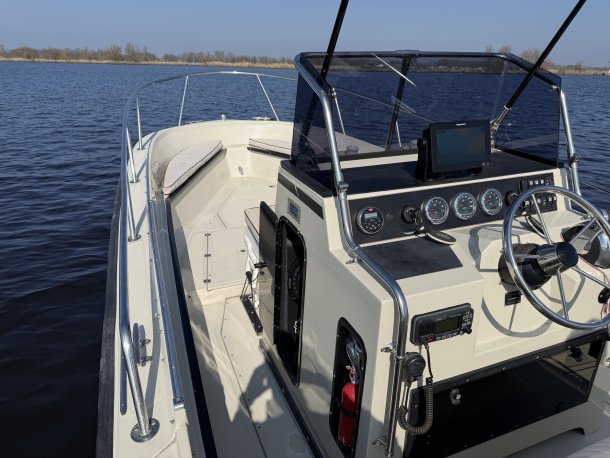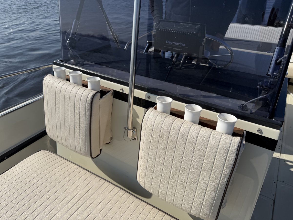 De indeling is praktisch en ruim, ideaal voor comfortabele dagtochten, watersporten, vissen of ontspannen dagjes uit met familie en vrienden. Tegelijkertijd levert hij het solide en zelfverzekerde vaargedrag waar Boston Whaler bekend om staat.