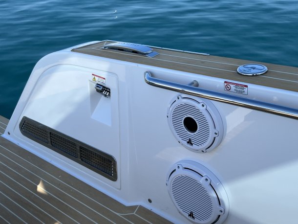 - Entertainement High Performance Package with: FUSION APOLLO RA770;FUSION SG-DA51600, 5 channel amplifier;Zone 1: master cabin's internal speakers (pair) with remote control NRX-300;Zone 2: aft area's external speakers (couple) + aft high quality Subwoofer JL-AUDIO 7.7" Sink + JL-AUDIO 8" Subwoofer;Zone 3: stern area's external speakers (couple) High Quality Zone JL-Audio 7.7 " (adjustable by APOLLO RA770 or APP.) (In alternative, Zone 3 can be used for the aft cabin)